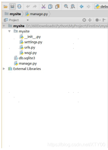 manage.py mysite/ __init__.py settings.py urls.py wsgi.py3. 移动到mysite目录下:cd mysite
