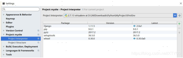 7. 点击菜单File->setting,Project Interpreter选择FirstEnv路径